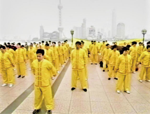 1999年7月法輪功遭受迫害之前,上海市法輪功學員集體煉功場景。(明慧網)