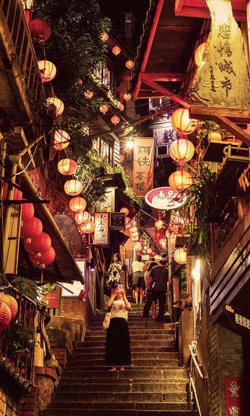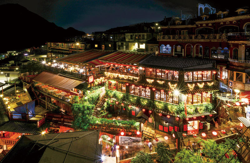 這山城真是神奇,明明位處高山,卻同時擁有高山屏障與遼闊海景風光,「春櫻花、夏清風、秋芒草、冬雲霧」四季晴雨、晨昏日夜景致各自獨傲唯美,遊客在隨意漫步中,白天俯瞰海景,感受九份老街旺盛人氣;夜晚靜靜坐在茶樓間,細細品味這悲情城市中的有情天地。