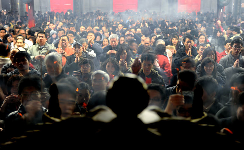 從今年1月2日起,蔡英文堅決拒絕中共「一國兩制」統一臺灣方案,其支持率由低迷迅速上升。圖為她四年前競選總統期間到廟裡拜拜。(AFP)
