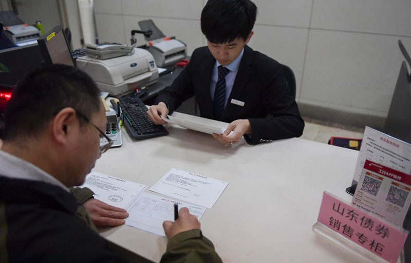 中共地方政府透過發行政府債券與各種管道舉債融資。據中國財政部,9月末全國地方政府債務餘額還有18兆2592億元。圖為濟南市民購買山東政府債券。(大紀元資料室)