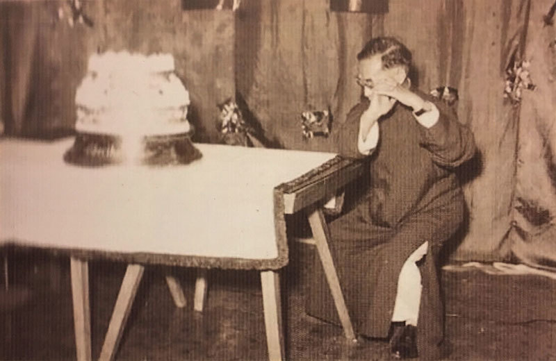 1955年9月,時任新亞學院院長的錢穆在院慶晚會上行拱手禮。(公有領域)
