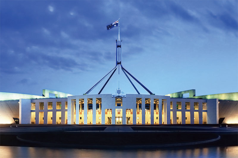 針對王立強在澳洲投誠事件,流亡海外的法學教授袁紅冰說:「如果是假的,澳洲政府絕對不會保護他,這是最基本的判斷標準。」圖為澳洲國會大廈正門和旗杆。(JJ Harrison/維基百科)