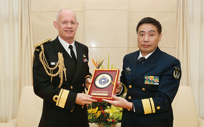 12月12日上午,海軍在京舉行晉升將官軍銜儀式。海軍政治委員秦生祥宣讀中央軍委主席習近平簽署的晉升軍銜命令,海軍副司令員馮丹宇主持晉銜儀式,在京海軍黨委常委王厚斌、袁華智、劉訓言、李玉傑、王征、劉子柱、周煦明出席。