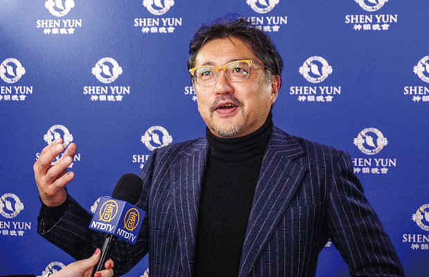 日本著名的陶藝家森野彰人(Akito Morino)表示:「神韻的演出把優秀的傳統中國呈現得完美無瑕。我明年還會再來看神韻!」(攝影/余鋼)