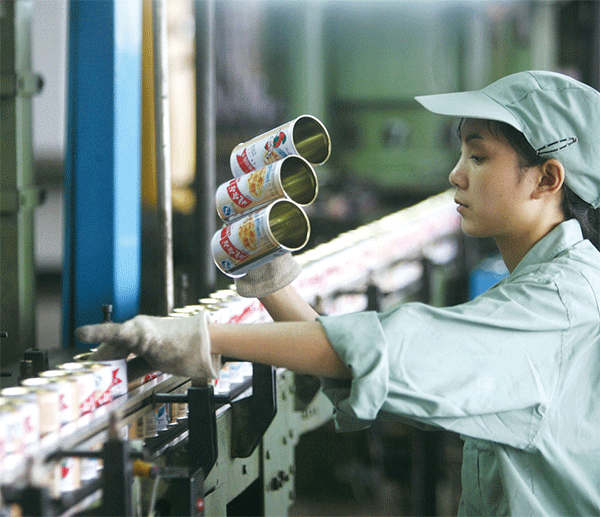在中共體制下,私有財產不受保護。在一些私人重點企業強行加入「公共股份」,並且派員進駐,號稱協助管理。圖為娃哈哈公司杭州工廠內的作業員。(Getty Images)