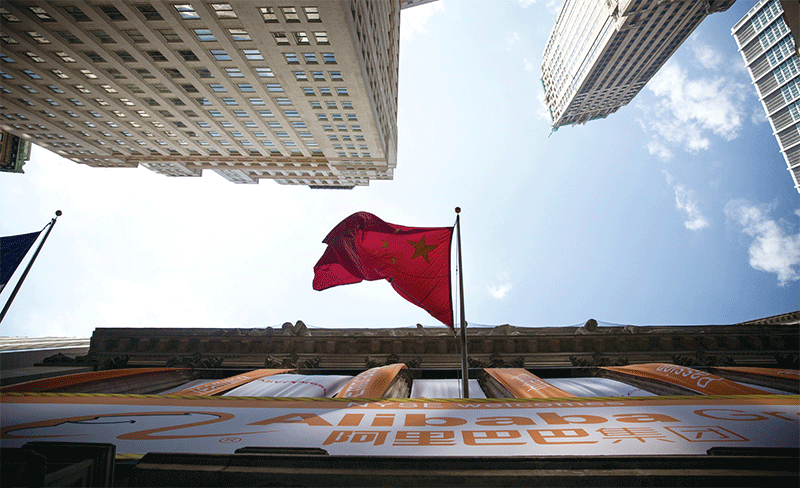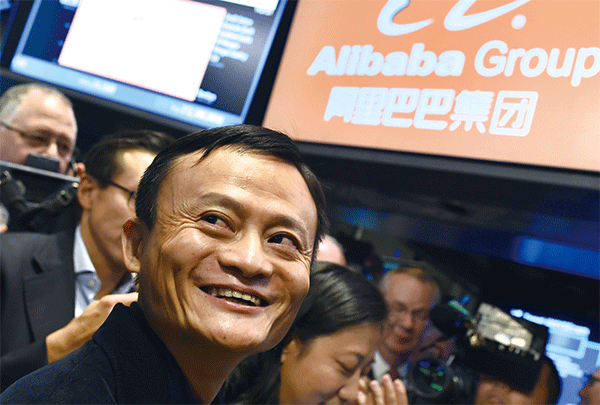 郭文貴稱馬雲辭職表面上是捨財保命,真正的目的與動機是瞞天過海,卸責洗錢。圖為2014年9月20日阿里巴巴在紐約上市。(Getty Images)