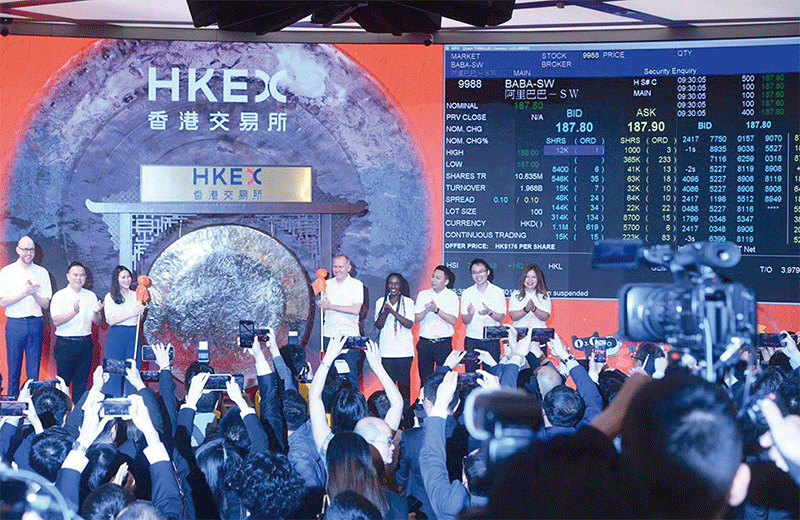 2019年11月26日阿里巴巴在香港上市,中共特別命令香港證監會修改了章程,以便阿里上市。面對江派那些貪婪的高官們,馬雲能真退休嗎?(黃信真/大紀元)