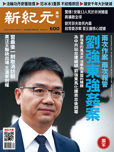 《新紀元》周刊2018年9月19日出版的第600期封面故事,對劉強東強姦案有詳細報導。(新紀元)