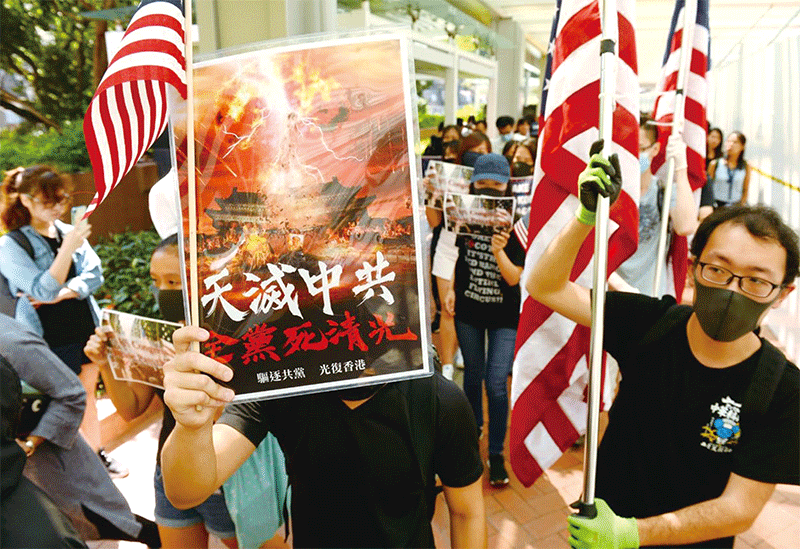 2019年9月20日,港大美國旗隊手持「天滅中共」標語,請求美國支持香港民主運動,通過《香港人權與民主法案》。(宋碧龍/大紀元)