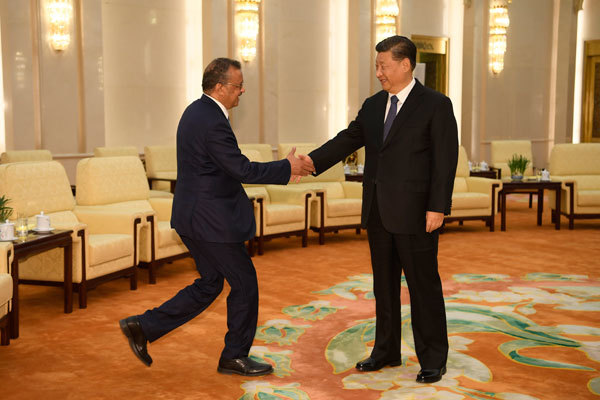 有媒體披露,中國在明面上至少向世衛捐4千萬美元。圖為世衛組織總幹事譚德賽(左)1月28日在北京受到習近平的接見。(Getty Images)