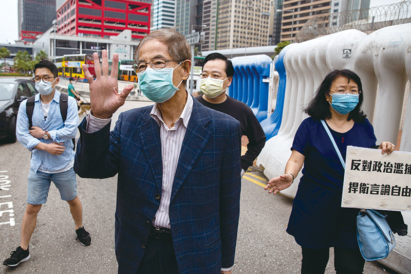 劉細良分析港共4.18大搜捕的目的之一,是想以李柱銘等溫和民主派人物作為對美國談判的籌碼。圖為李柱銘4.18被捕後獲釋。(AFP)