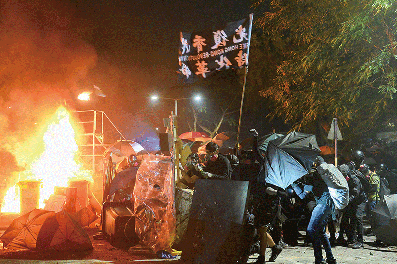 不過中大學生並沒有聽他的。因為港警正使用激烈的武力攻擊,僅當天晚上就發射超過千枚催淚彈,中大校園淪為戰場,象徵港人靈魂被摧毀,青年學子沒有退路,只能勇敢擔當死守保衛。