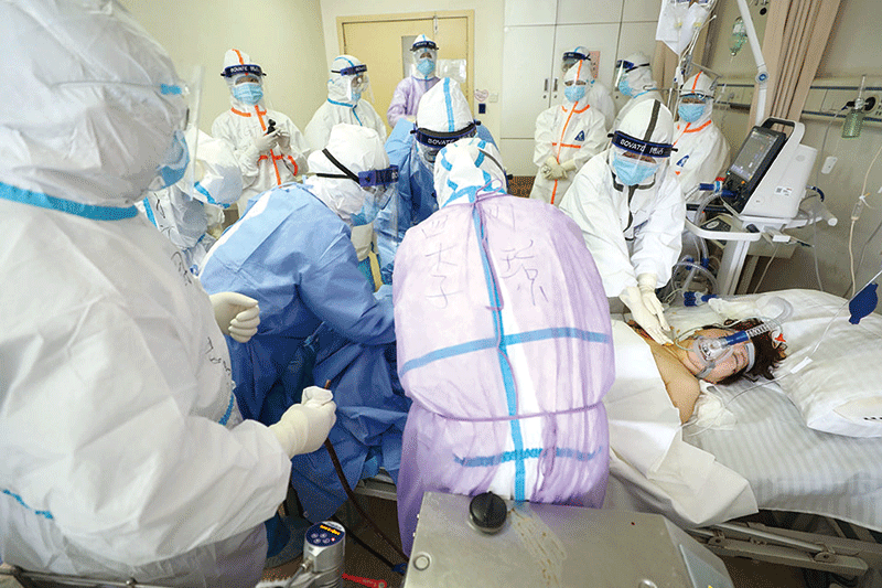 中共病毒之重症病死率為4%,三周定生死。圖為武漢重症者接受人工肺治療。(AFP)