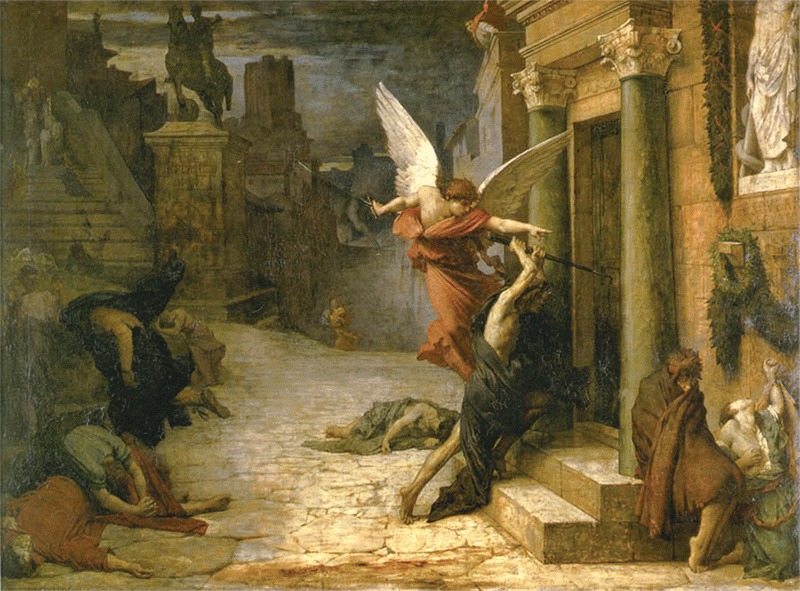 「之後一位善良天使顯現,他指揮一位惡天使手持長矛戳擊各家門戶,門被戳幾下,家裡就死去幾人。」那些死去的人都是參與迫害基督徒的。
