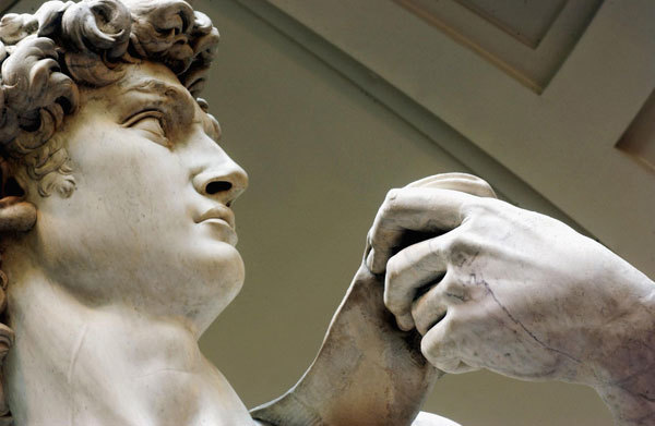 瘦弱的大衛充滿信心說「神與我同在」,戰勝巨人哥利亞。圖為米開朗基羅的雕像〈大衛〉的頭部特寫。(Getty Images)