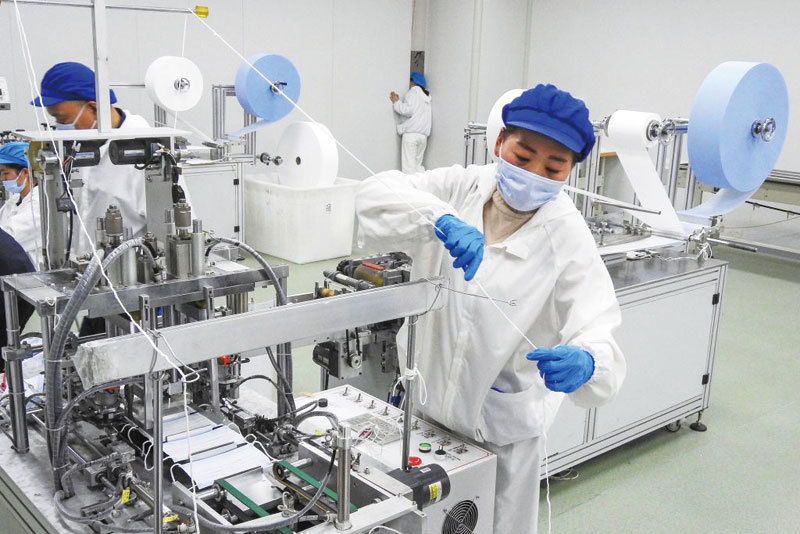 中共大行「口罩外交」,不過因品質低劣,在國際間引發反彈,掀起退貨潮。圖為中國江蘇一家口罩工廠。(Getty Images)