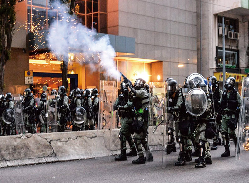 幾乎可以肯定,香港警隊已有中共的祕密支部,有不少人可能已經成為中共黨員。圖為香港警察2019年8月11日在灣仔發射催淚彈。(宋碧龍/大紀元)