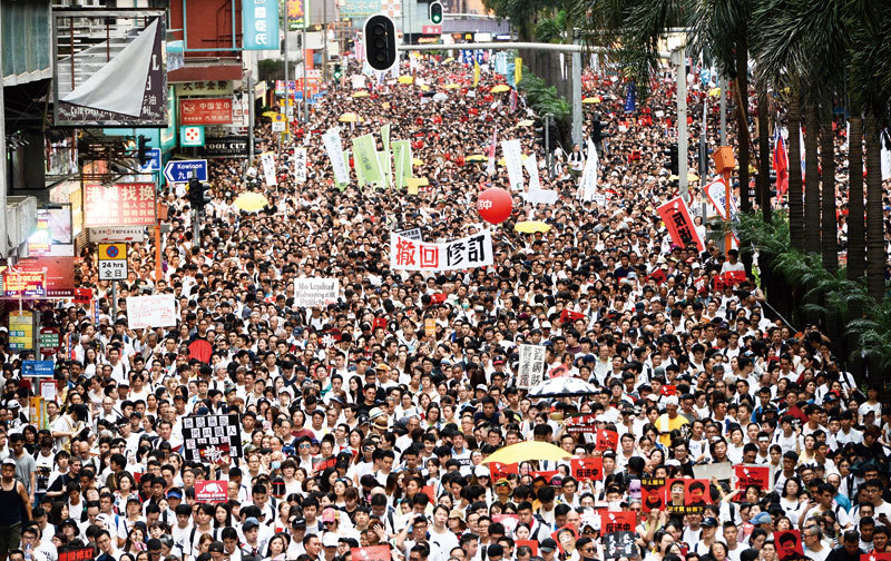 大陸人和香港人接觸後,總感覺香港民主運動和政府宣傳的不一樣。圖為去年6月9日百萬香港市民上街遊行,抗議修訂逃犯條例。(宋碧龍/大紀元)