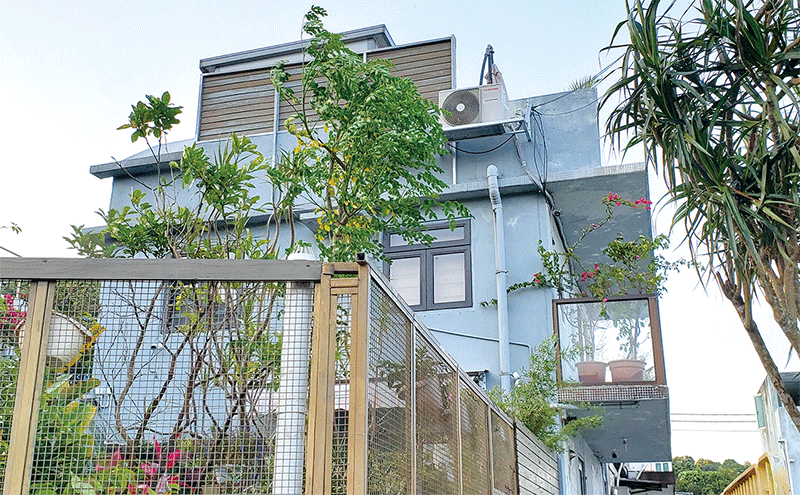 《明報》接獲投訴,指涉事北港新村村屋去年起,在天臺搭建占約半層的長方形黑色構築物,上蓋鋪設太陽能板,並已圍封,質疑屬僭建。投訴人又稱涉事村屋地面占用官地,近年更擴大占用範圍泊車,質疑是非法占用。