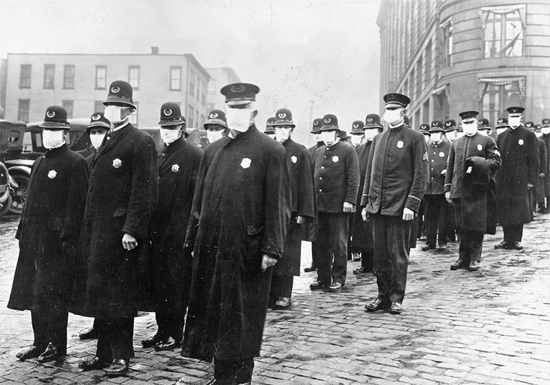 1918年12月,西班牙大流感爆發期間,戴口罩的西雅圖警察。(公有領域)
