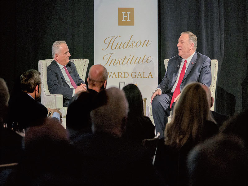 美國國務卿蓬佩奧(右)2019 年10 月30 日在紐約哈德遜研究所演講表示,「我們終於意識到共產黨對美國及我們的價值觀懷有敵意的程度。」(蓬佩奧推特截圖)