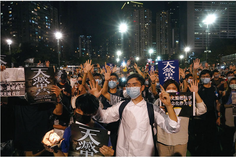 2020年6月4日入夜,大批香港人無懼打壓及恐嚇,到維園參加六四燭光悼念,延續31年全球最大型的民間悼念活動。「天滅中共」成為香港人抗爭中的共識。(AFP)