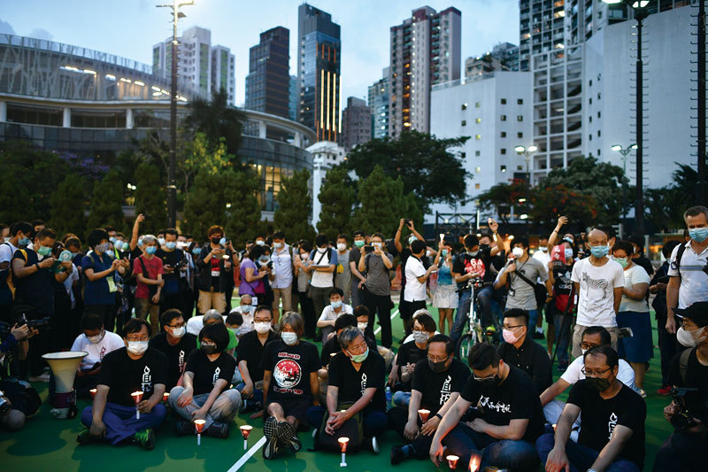 2020年6月4日,香港市民在維園足球場悼念「六四」受難者。(AFP)