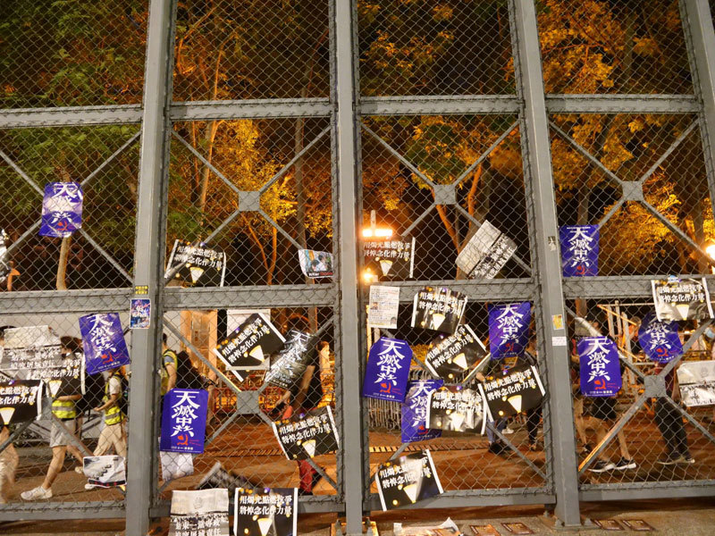 2020年6月4日,港人無懼官方禁令,搬開鐵馬,走進被政府封閉的維多利亞公園,照常舉辦悼念活動。(宋碧龍/大紀元)