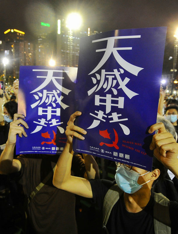 今年與往年不同的是,人們在集會時多了兩道橫幅:一個是「光復香港 時代革命」,一個是「天滅中共」,這兩句話已成為當今香港人最大的心聲和抗爭中的共識。◇
