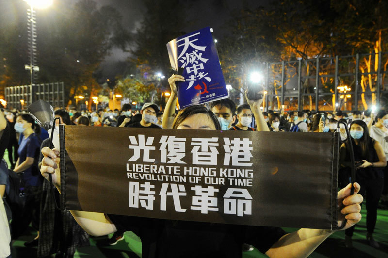 6月4日晚,數以萬計的香港人不顧警方禁令, 在維園及各區聚會,遍地開花悼念六四。 集會市民手持白色蠟燭,一起高喊「平反六四」、 「時代革命,光復香港」和「天滅中共」等口號。 其中「天滅中共」已成為香港人抗爭中的共識。