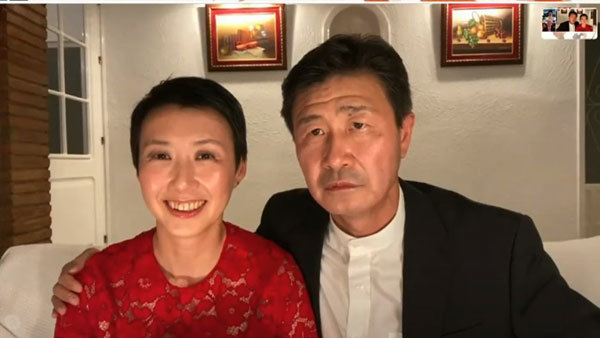 郝海東宣讀建國宣言之後,與妻子葉釗穎一起出鏡。(推特圖片)