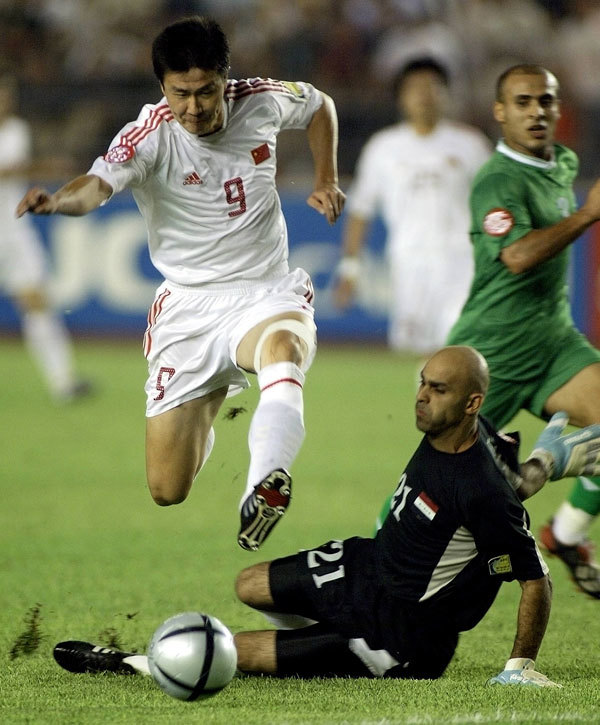 郝海東是上世紀90年代著名足球運動員,在中國可謂家喻戶曉。圖為郝海東2004年於北京工人體育場。(AFP)