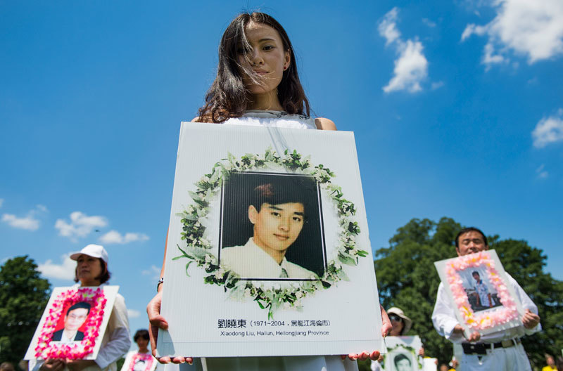 1999年7月,江澤民集團掀起對法輪功修煉群體的瘋狂迫害,無數法輪功學員被迫害致死。圖為法輪功修煉者遊行悼念被迫害致死的法輪功學員。(AFP)