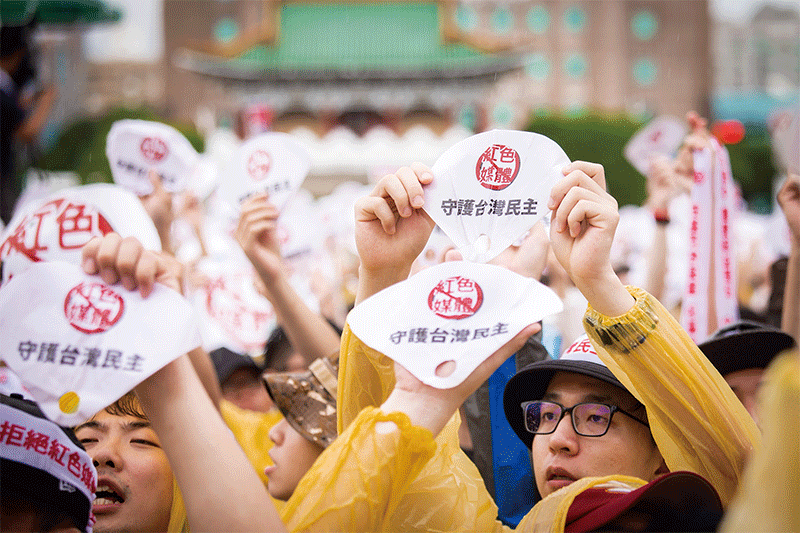 中共在去年香港反送中時的暴行,讓中共在臺灣多年的經營幾乎一夜之間煙消雲散,臺灣民眾更加覺醒。圖為去年6月23日,台灣民眾不畏風雨參加「拒絕紅色媒體、守護台灣民主」活動。(陳柏州/大紀元)