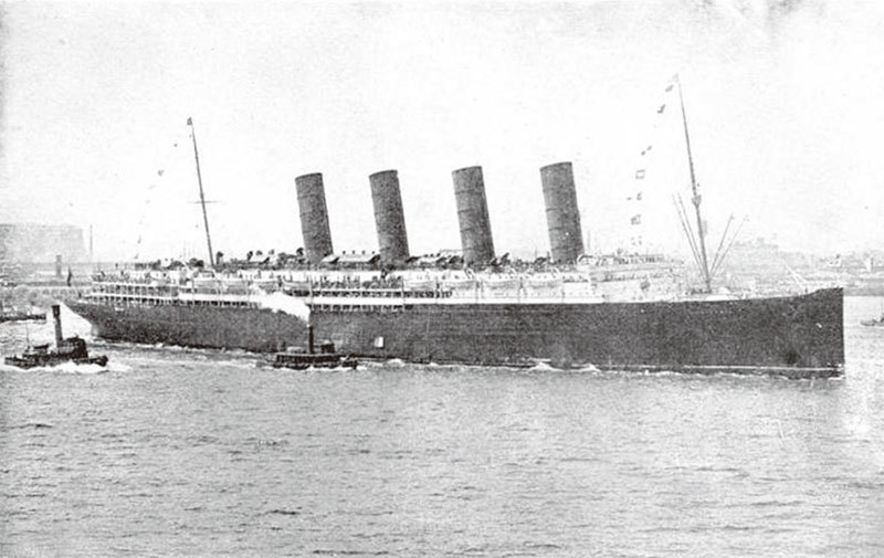 1915年5月7日盧西塔尼亞郵輪(圖)被德國潛艇擊沉,1900多人死亡,大部分是美國人。一年半後美國決定參戰。美國人做決定慢,一旦決定,後面的力量卻是排山倒海。(維基百科)