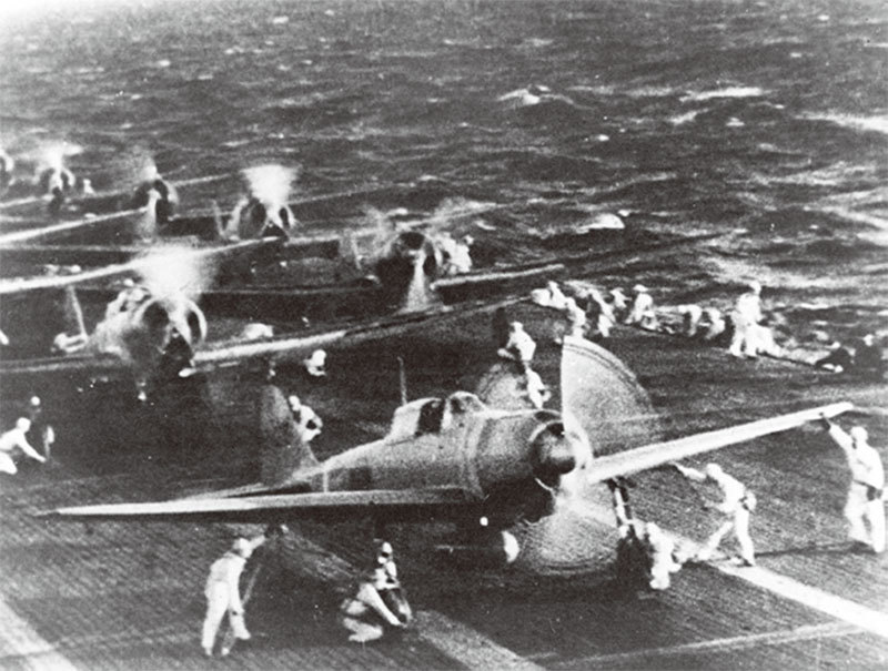 珍珠港事件美國人死了2000多,美國發誓要炸平東京,他們做到了。圖為日軍零式戰鬥機正從翔鶴號航空母艦上起飛。(維基百科)