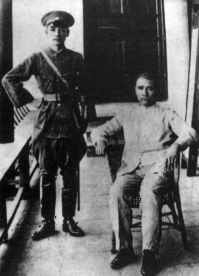 1923年蔣介石至莫斯科考察,歸國後提出報告說,蘇俄所謂「世界革命」的策略與目的比西方殖民地主義對東方民族獨立運動更危險……圖為1924年黃埔軍校開學典禮後,孫中山與蔣介石合影。(鍾元翻攝/大紀元)