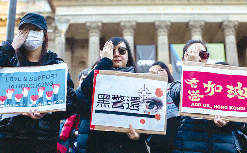 澳洲7月9日宣布,持澳洲學生簽證或臨時工作簽證的香港人,其簽證可延長到5年。圖為2019年8月31日墨爾本聲援香港的遊行集會。(Getty Images)