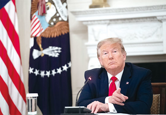 美國總統特朗普6月18日發推表示,美國保留和中國(中共)完全脫鉤的政策選擇。圖為特朗普當天於白宮一次圓桌討論會。(AFP)