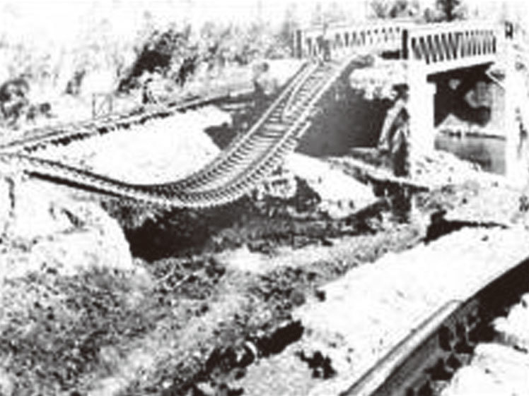 圖為京廣鐵路被沖毀102公里。(維基百科)