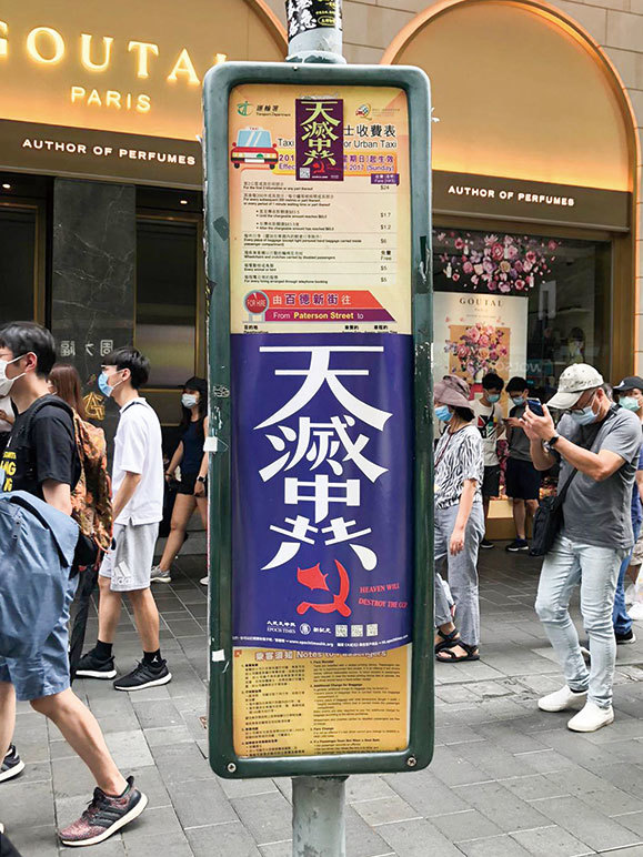 中共是人間最大的邪魔,「天滅中共」成為港人驅邪的護身符。圖為7月1日,香港街頭張貼的「天滅中共」海報。(梁珍/大紀元)