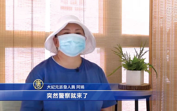《大紀元》派發人員阿娟。(影片截圖)