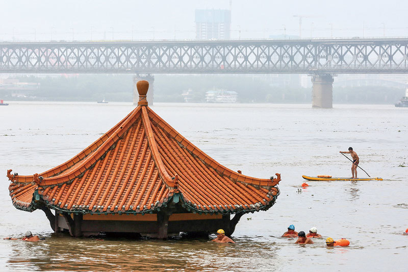 中國南方多省6月以來連降暴雨。專家指三峽工程對防洪根本不起作用,武漢已發出今年最高等級的紅色預警。圖為2020年7月8日武漢洪水氾濫。(AFP)