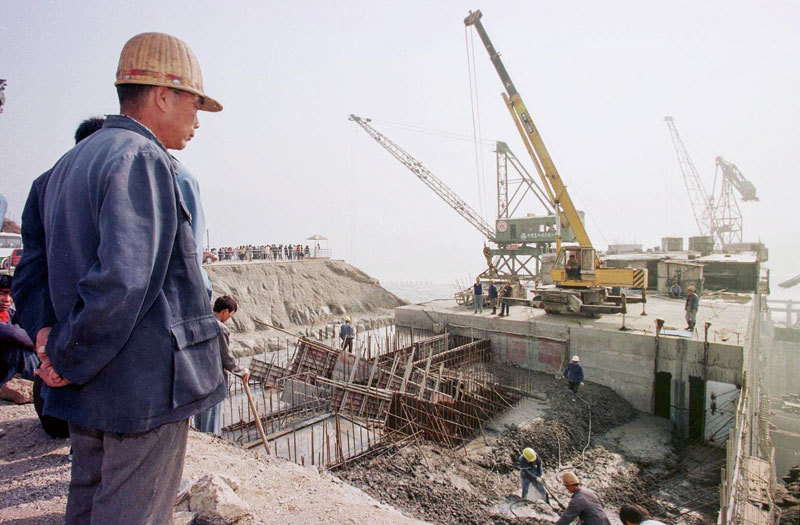 中國設計和領導質量工程檢查的錢正英、張光斗當年致信中共中央時指出三峽大壩質量不好,第一個原因是水泥澆築工程太快。圖為1996年11月7日長江三峽大壩工地。(AFP)