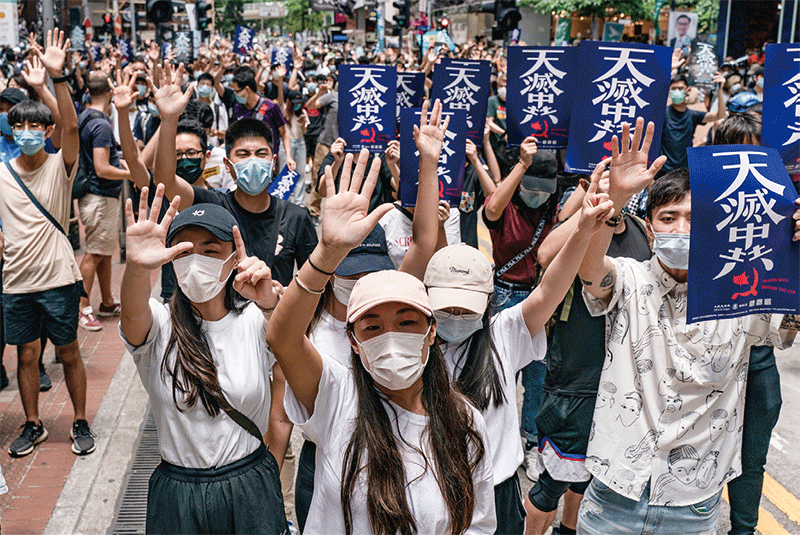 香港人在反送中運動中,喊出了「天滅中共」的口號,極大地清理了香港的環境。圖為5月24日上萬香港人走上街頭反對「香港版國安法」。(AFP)