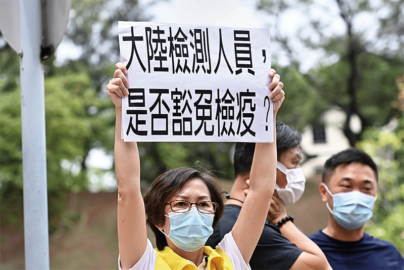 然而,香港民眾卻展示了強烈的反抗。不但有區議員質疑大陸團隊在做核酸檢測的同時、偷盜港人DNA信息,港人DNA有「送中」風險。也有醫生公開表示,這只是「公關秀」,批評港府抗疫政治掛帥,不堵塞大量豁免檢疫人士入境的漏洞,全民檢測毫無意義。