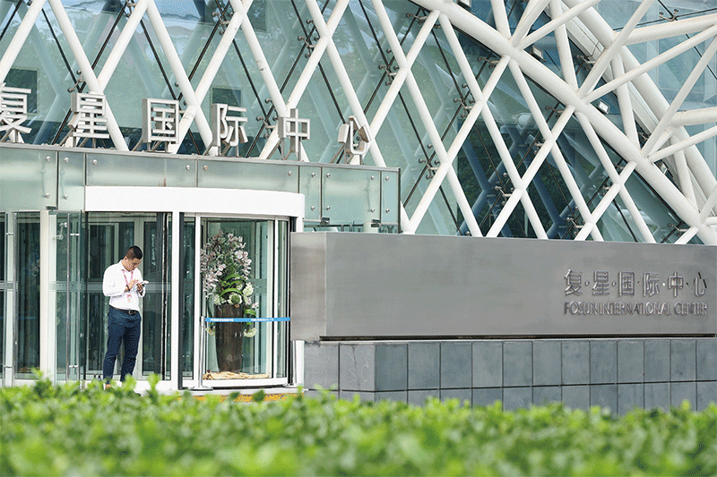 江綿恆兒子江志誠的藥明康得控股的復星醫藥,因與美國吉利德公司有合營業務而在疫情中逆市大漲。圖為復星國際北京總部大樓。(AFP)
