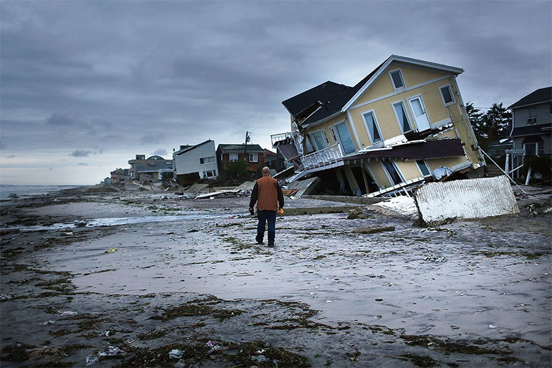 2012年美國總統大選時,有機會擊敗奧巴馬的羅姆尼,其選情突因桑迪颶風而大勢已去。民調領先的拜登會跟羅姆尼一樣嗎?圖為受桑迪颶風影響的災區。(Getty Images)