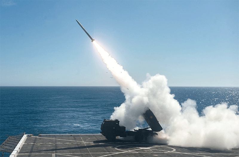 由美商洛克希德馬丁、波音、雷神三大軍火商共同推出的「精確打擊導彈」(圖)計畫,將取代服役30年的ATACMS陸軍戰術導彈系統。(美國太平洋艦隊官網)
