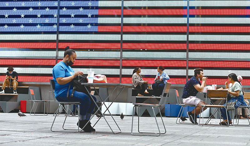 由於黨派之爭,美國總統大選讓民主黨和共和黨人在疫情處理上出現截然不同的看法。圖為9月17日紐約市民保持社交距離用餐。(AFP)